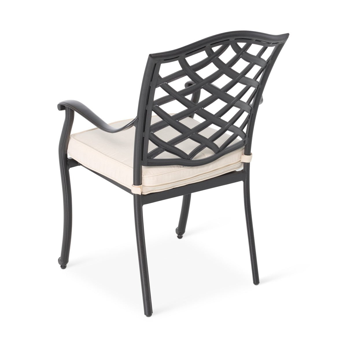 Dine in style out on your patio with this terra mist powder coated cast aluminum dining set. The Hanley 7pc dining group is made of 4 cast aluminum dining chairs with solution dyed polyester fabric cushions, 2 cast swivel dining chairs with cushions, and a 38" by 68" rectangle dining table. Create meaningful and memorable moments with this classically designed group that will match any patio.