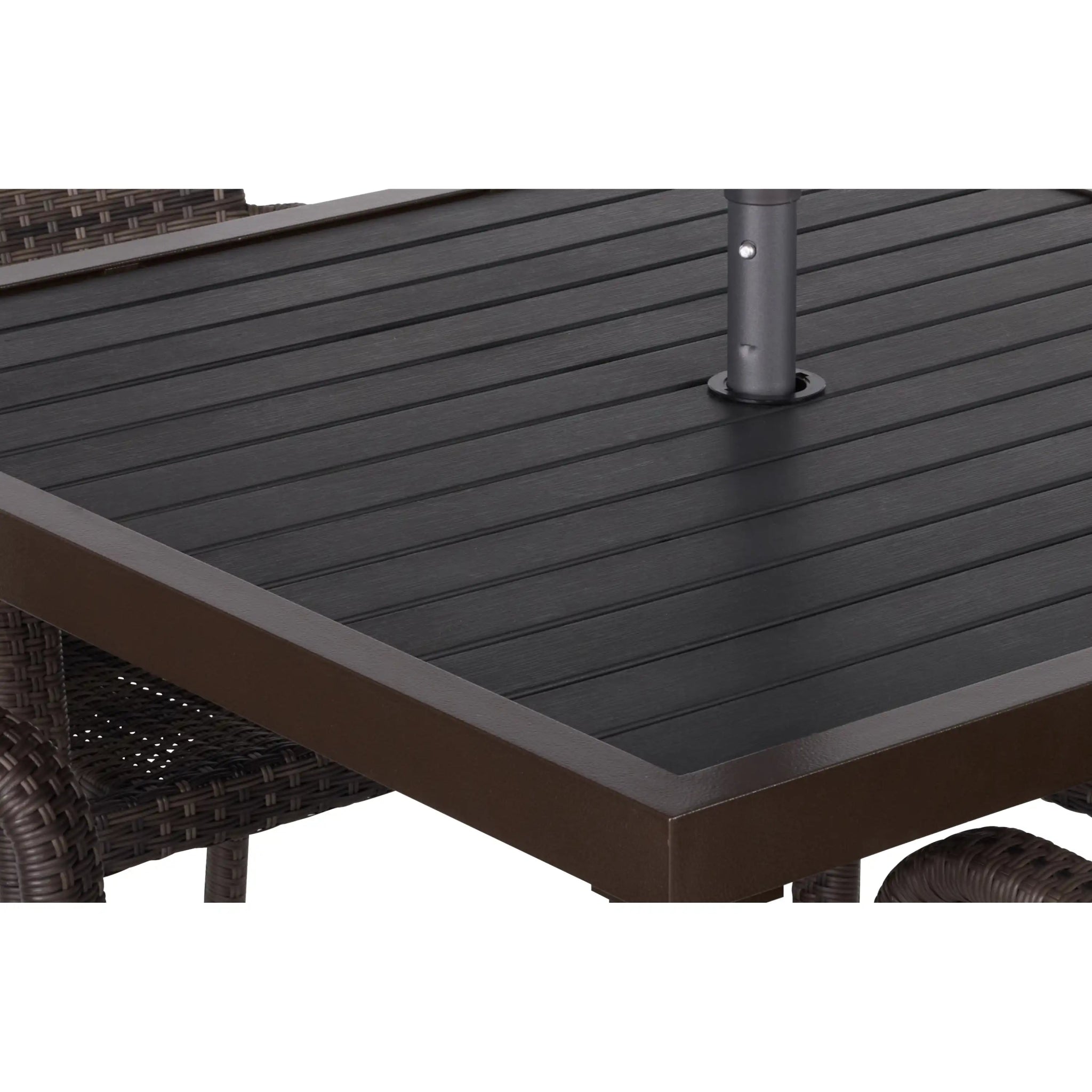 The St. Kitts 5-Piece Woven Patio Collection is the perfect blend of style, convenience, and functionality for any outdoor space. This compact set comfortably accommodates up to four people, making it ideal for small patios or balconies. The chairs feature a sleek, stackable design for easy storage, while the stylish weave adds a touch of elegance to your outdoor décor. Built for low maintenance, the set is easy to clean and designed to withstand the elements. The table includes a convenient umbrella hole, offering the option to add shade, and the comfortable chairs ensure a relaxing outdoor experience. Perfect for those seeking a chic, practical, and space-saving patio solution.