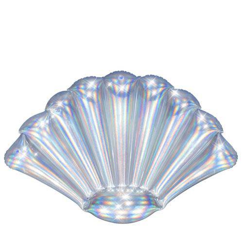 The Iridescent Shell Lounge is the perfect accessory to fulfill your mermaid fantasy. The holographic lining will make every pool party picture Instagram worthy. This glowing shell lounge measures 73 inches by 45 inches making it perfect for floating around the pool.