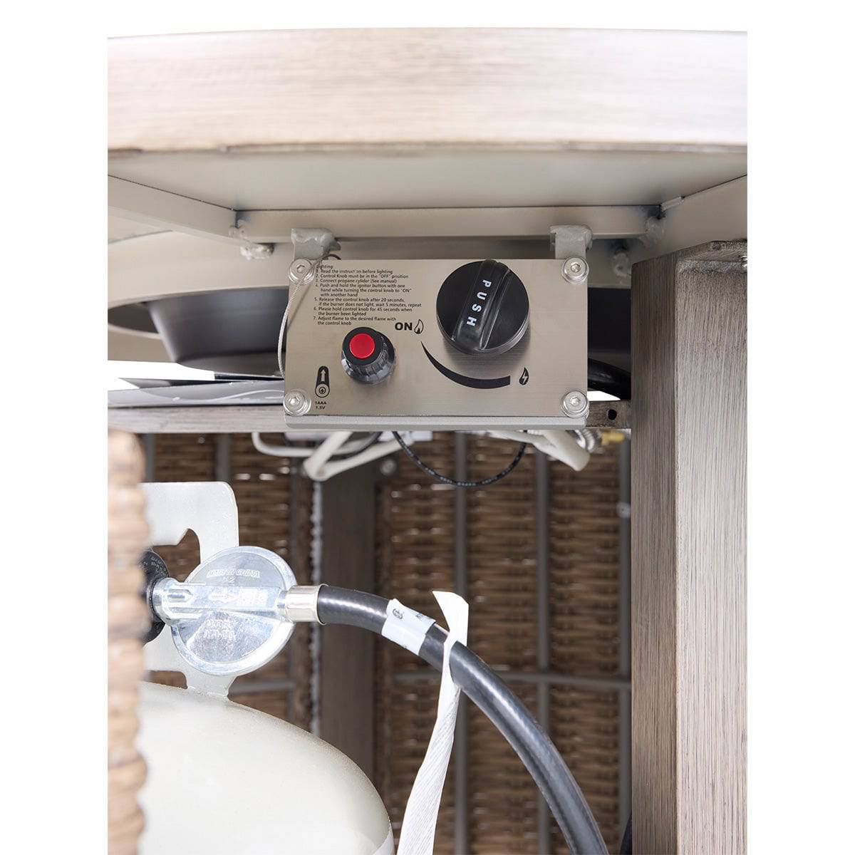 Upgrade your patio with the Bayfield Chat Group. Durably crafted with handwoven resin wicker over a rust-proof frame, this stylish set can withstand the elements. The exposed armrests resemble wood but are weather-resistant. Enjoy the warm glow of the fire while lounging on the plush Nuvella® seats.