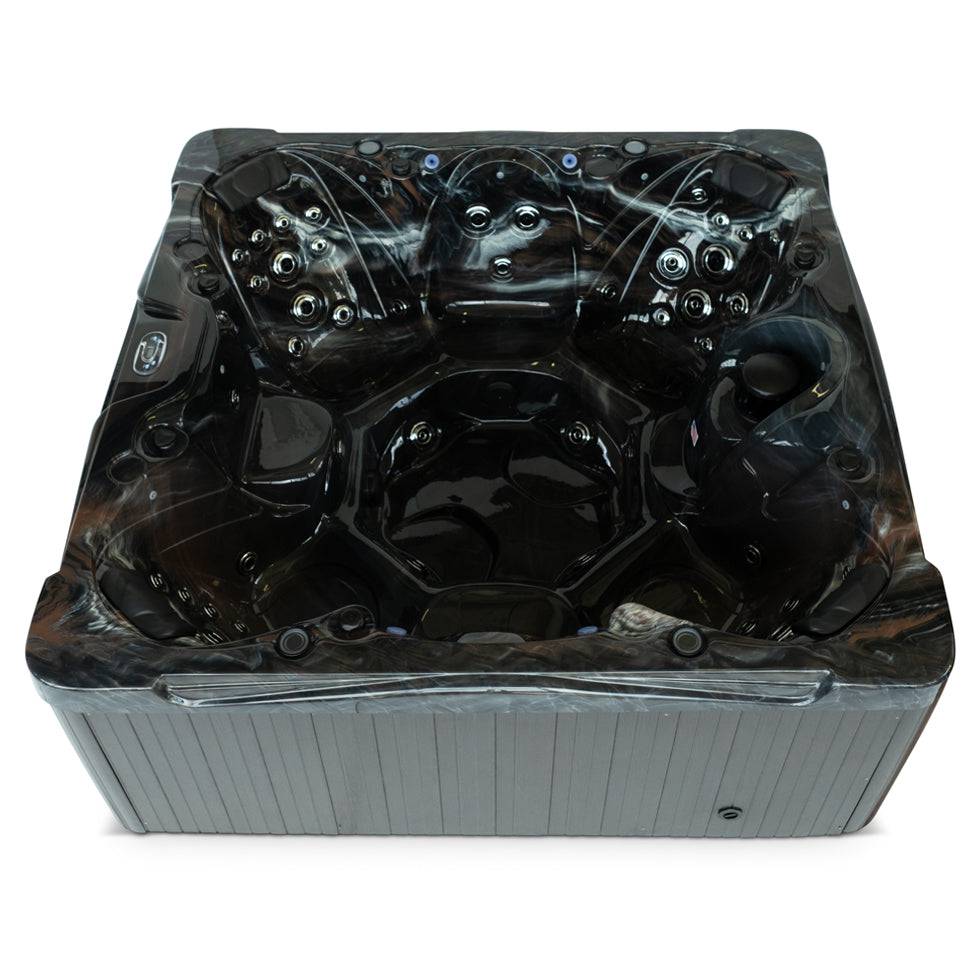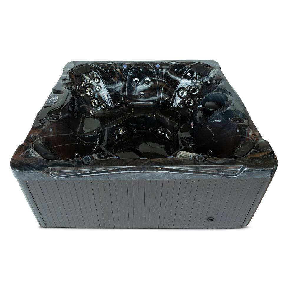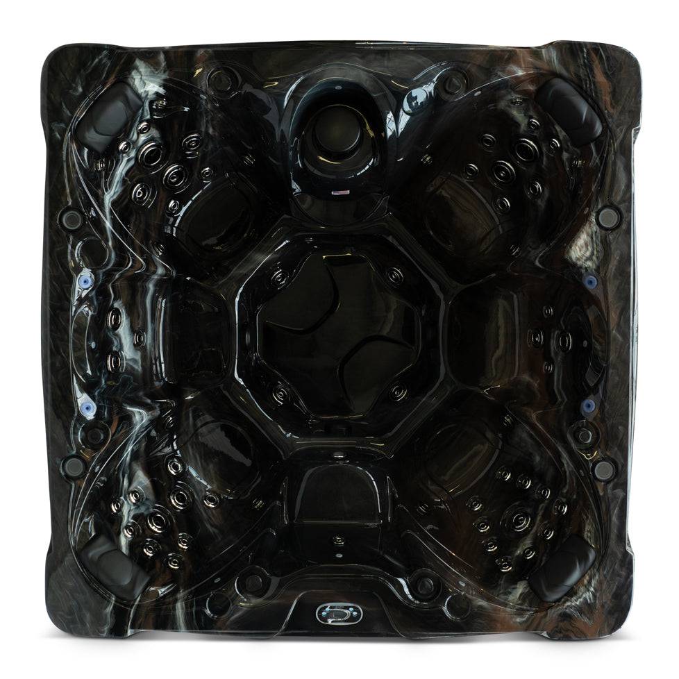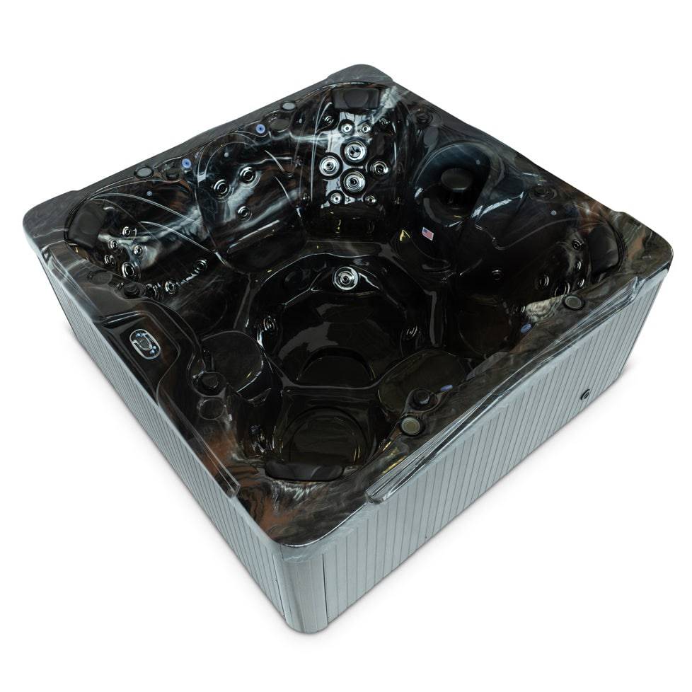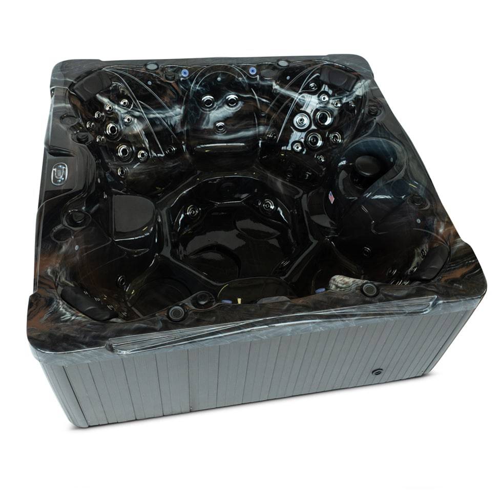 The Signature Fremont spa offers spacious seating for 7 individuals in a 91"x 91" frame, with 57 powerful jets for ultimate relaxation. Equipped with (2) 6 HP pumps, a 325 gallon capacity, and energy-efficient insulation, this spa provides a luxurious experience in a sleek mocha exterior with beautiful perimeter lighting and a backlit waterfall.