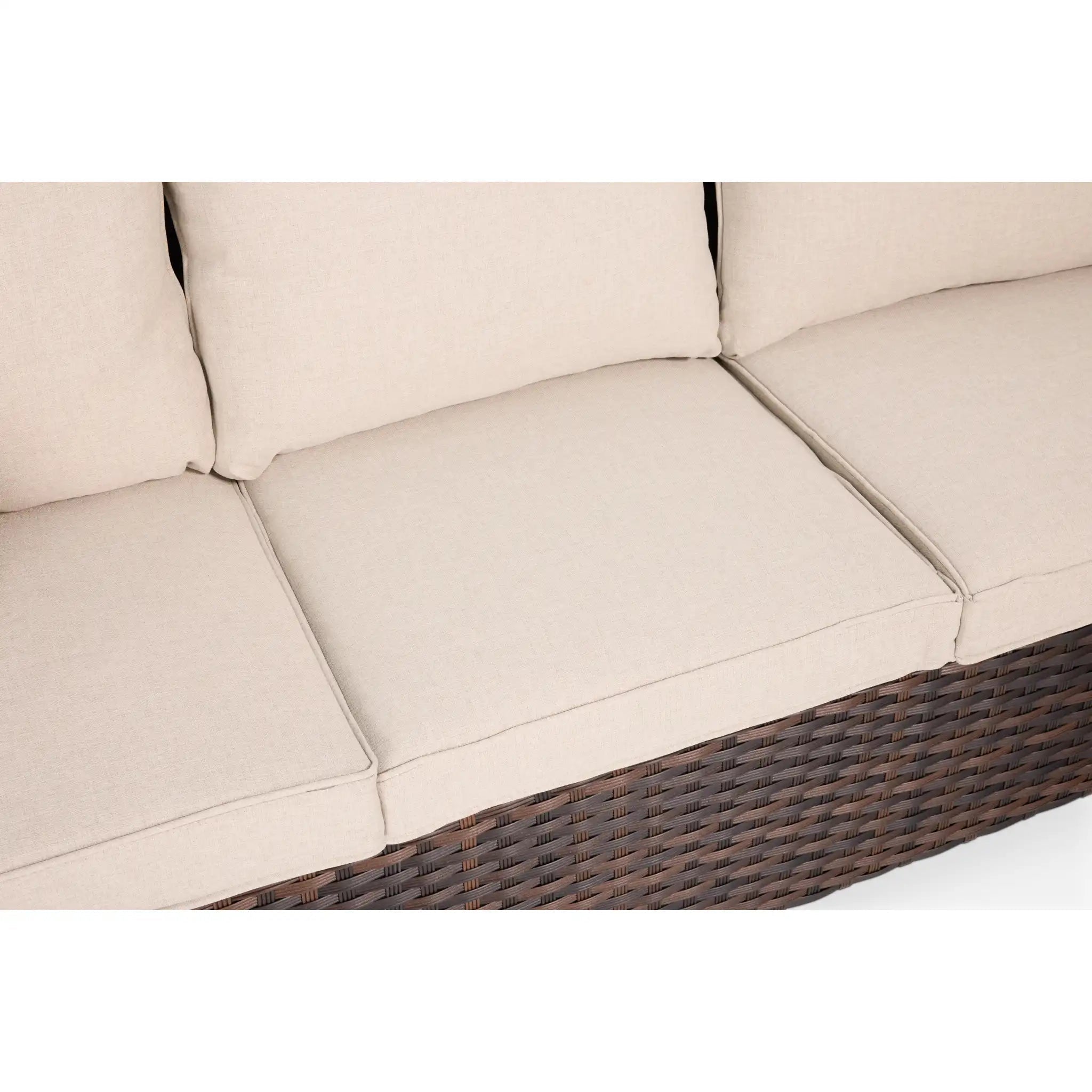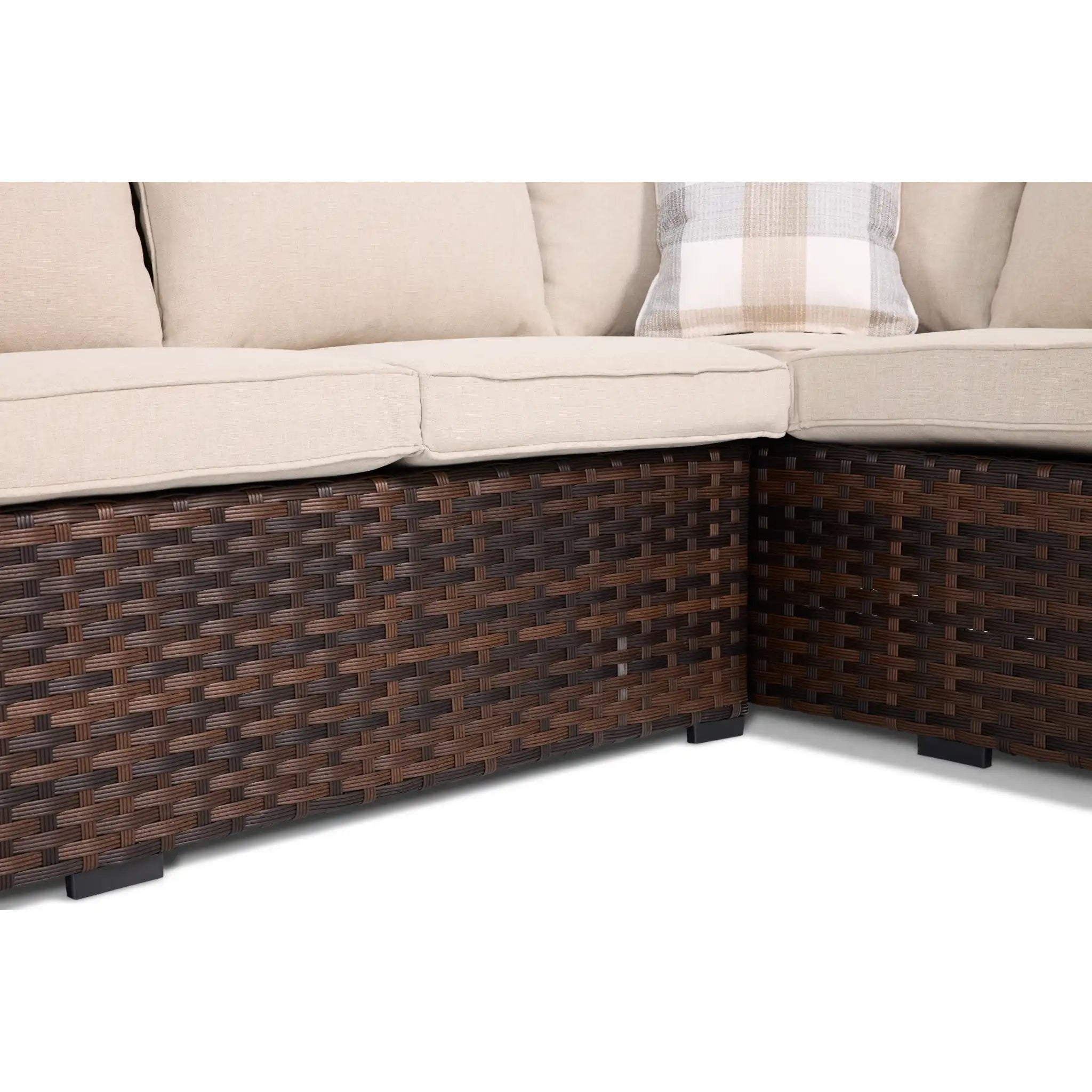 Transform your backyard into an outdoor sanctuary with the Arcadia 2-piece Sectional. Built with all-weather PE rattan, it withstands harsh winters for long-lasting use. The plush cushions and added details offer both comfort and sophistication, making this a must-have for any outdoor space. (Winter-proof patio perfection!)